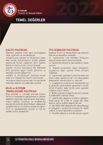 KALİTE POLİTİKASI ÜYE İLİŞKİLERİ POLİTİKASI