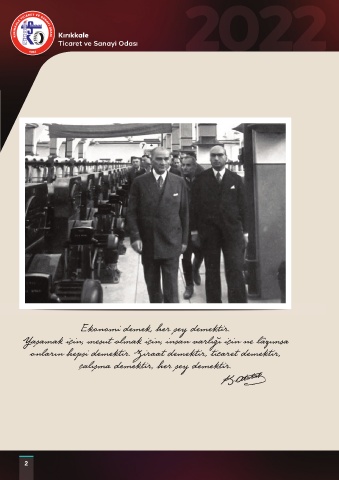 Kırıkkale Ticaret ve Sanayi Odası Ekonomi demek, her şey demektir. Yaşamak için, mesut olmak için, insan varlığı için ne lâzımsa onların hepsi demektir. Ziraat demektir, ticaret demektir, çalışma demektir, her şey demektir. 2