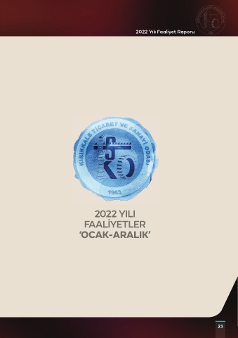 2022 Yılı Faaliyet Raporu 2022 YILI FAALİYETLER ‘OCAK-ARALIK’ 23
