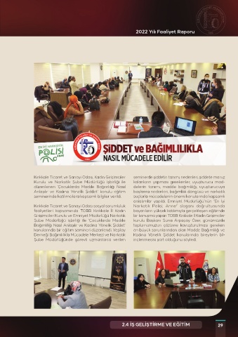 Anlaşılır ve Kadına Yönelik Şiddet’ konulu eğitim başlama nedenleri, bağımlılık döngüsü ve narkotik