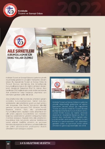 sözleşmeler, aile şirketlerinin güçlü ve zayıf yönleri, Kırıkkale Ticaret ve Sanayi Odasının üyelerine