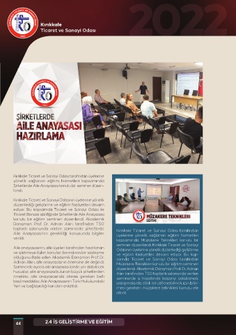 44 2.4 İŞ GELİŞTİRME VE EĞİTİM