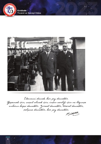 Kırıkkale Ticaret ve Sanayi Odası Ekonomi demek, her şey demektir. Yaşamak için, mesut olmak için, insan varlığı için ne lâzımsa onların hepsi demektir. Ziraat demektir, ticaret demektir, çalışma demektir, her şey demektir. 2