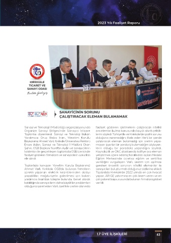 katılımları ile gerçekleşen toplantıda OSB içerisinde Kaynakçılık ve CNC alanlarında kalifiye ara eleman