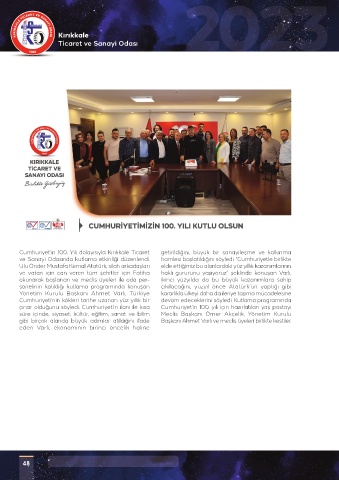 Cumhuriyet’in 100. Yılı dolayısıyla Kırıkkale Ticaret getirildiğini, büyük bir sanayileşme ve kalkınma