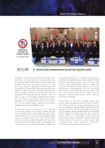 görmüş bir sanayi şehridir. Kırıkkale’mizin temel di- dolayı ülkemizin savunma sanayiindeki lider