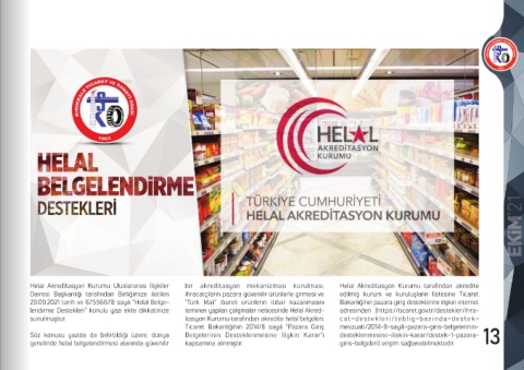 29.09.2021 tarih ve 67556678 sayılı "Helal Belge- "Türk Malı" ibareli ürünlerin itibar kazanmasını Bakanlığı'nın pazara giriş desteklerine ilişkin internet