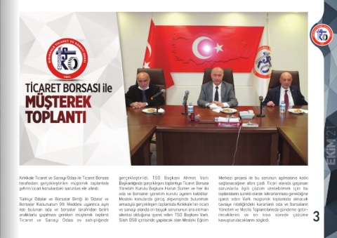 aralıklarla yapılması gereken müşterek toplantı sıkıntısı olduğuna işaret eden TSO Başkanı Varlı, ileceklerini ve en kısa sürede çözüme 3