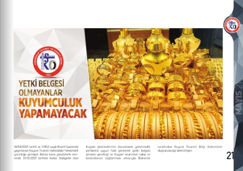 yürürlüğe girmiştir. Bahse konu yönetmelik met- almaları gerektiği ve Kuyum ticaretinin takip ve 21