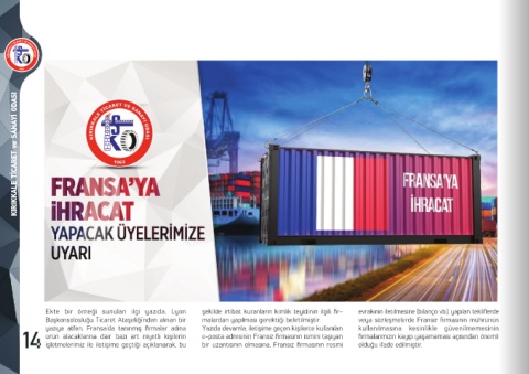 14 ürün alacaklarına dair bazı art niyetli kişilerin e-posta adresinin Fransız firmasının ismini taşıyan firmalarımızın kayıp yaşamaması açısından önemli