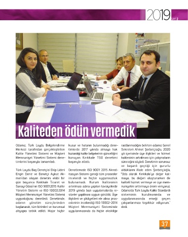 Yönetim Sistemi ve ıSO 10002:2014 2019 yılında bazı uygulamalarda re- Odamızda Türk Loydu Kalite Standardı