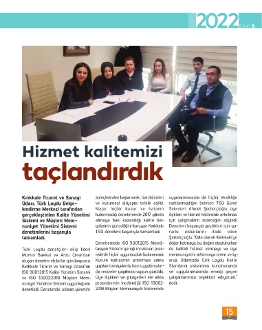 Türk Loydu denetçileri ekip lideri tasyon Sistemi gereği incelenen pros- de kaliteli hizmet vermeye ve üye