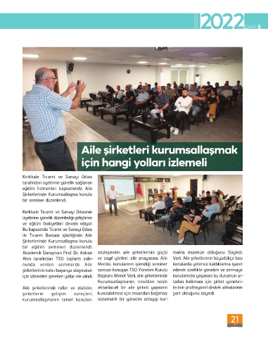 için izlemeleri gereken yollar ele alındı. Başkanı Ahmet Varlı, aile şirketlerinde konularında yaşanan bu durumun or-