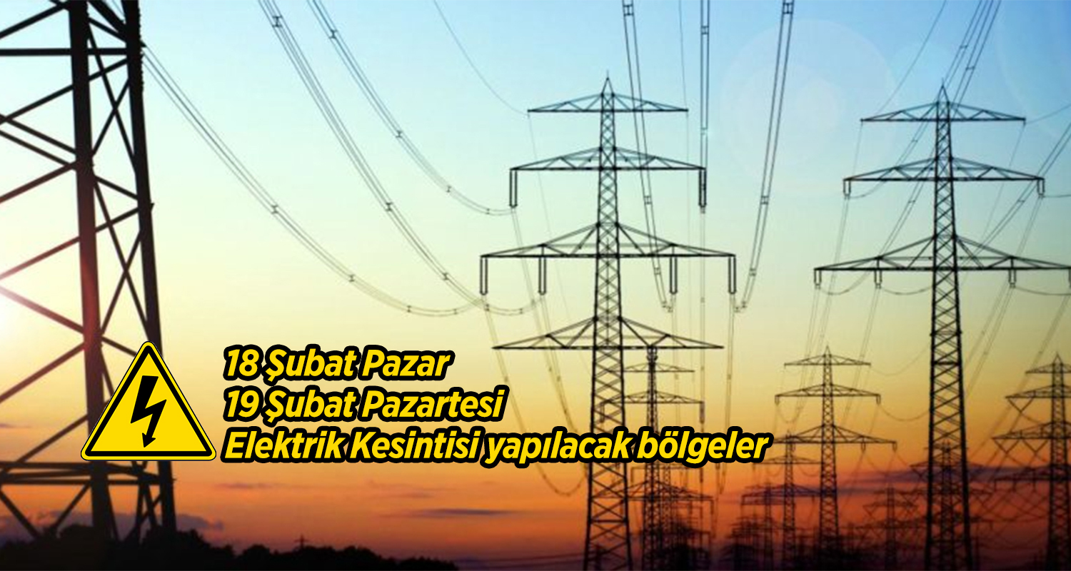 18-19 ŞUBAT TARİHLERİNDE ELEKTRİK KESİNTİSİ YAPILACAK BÖLGELER