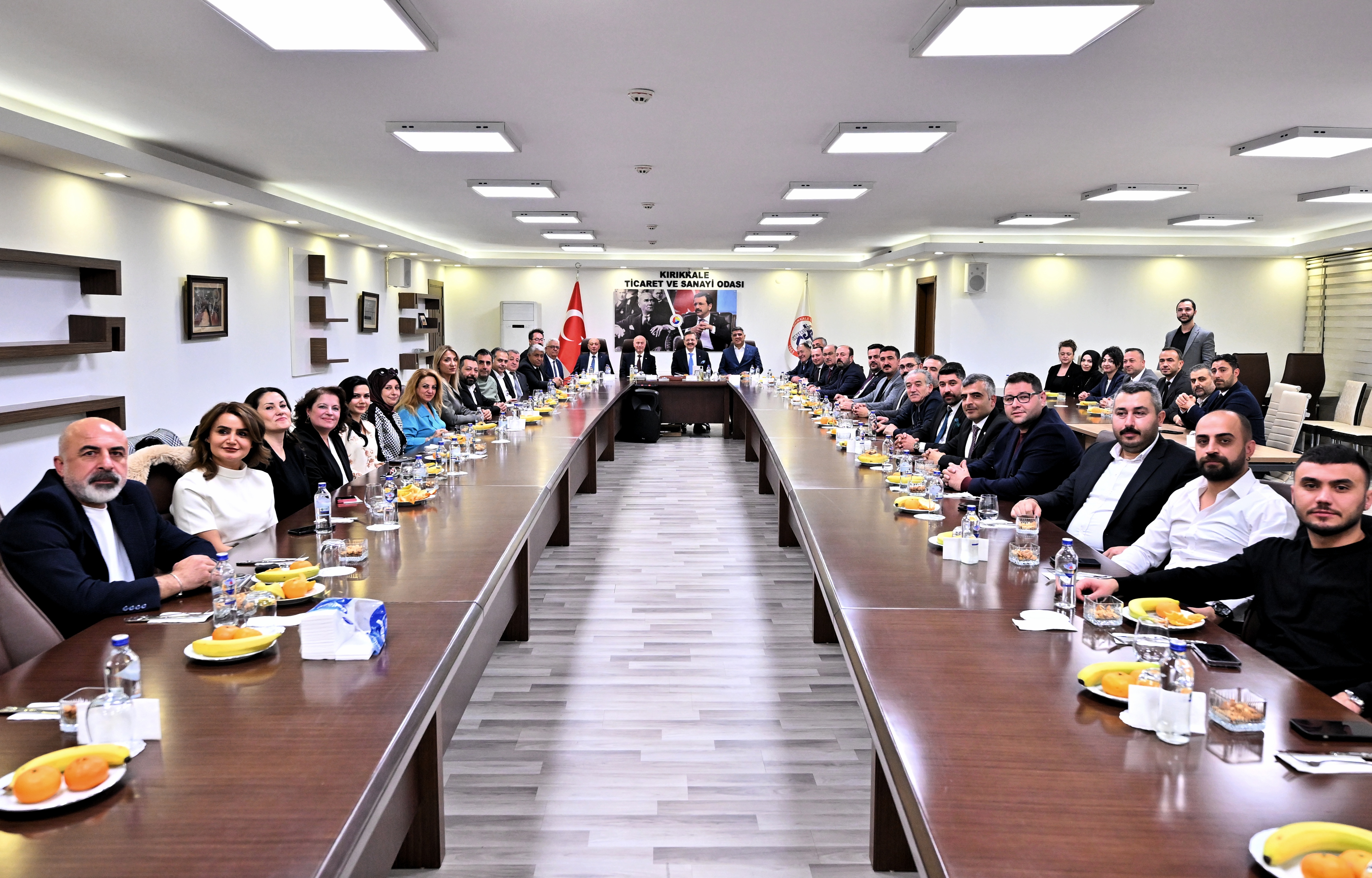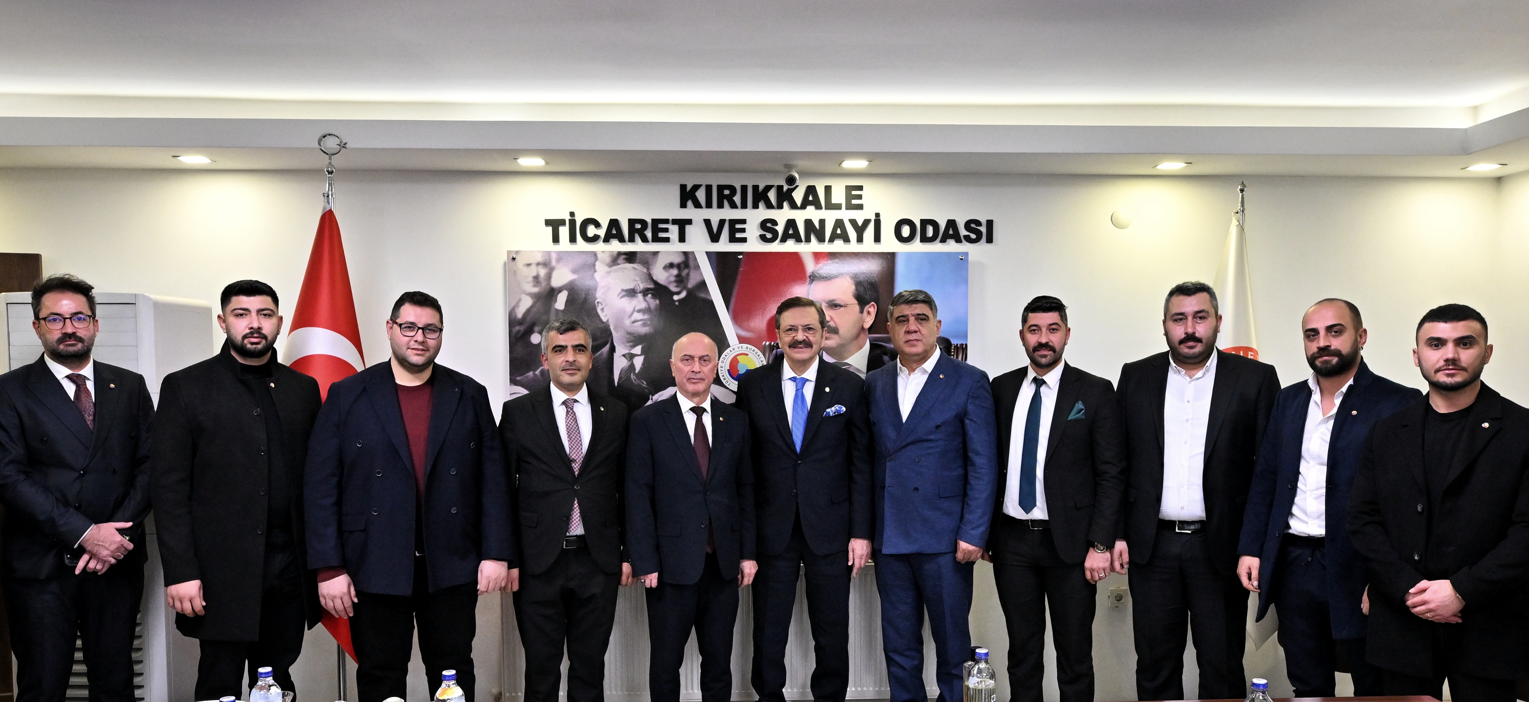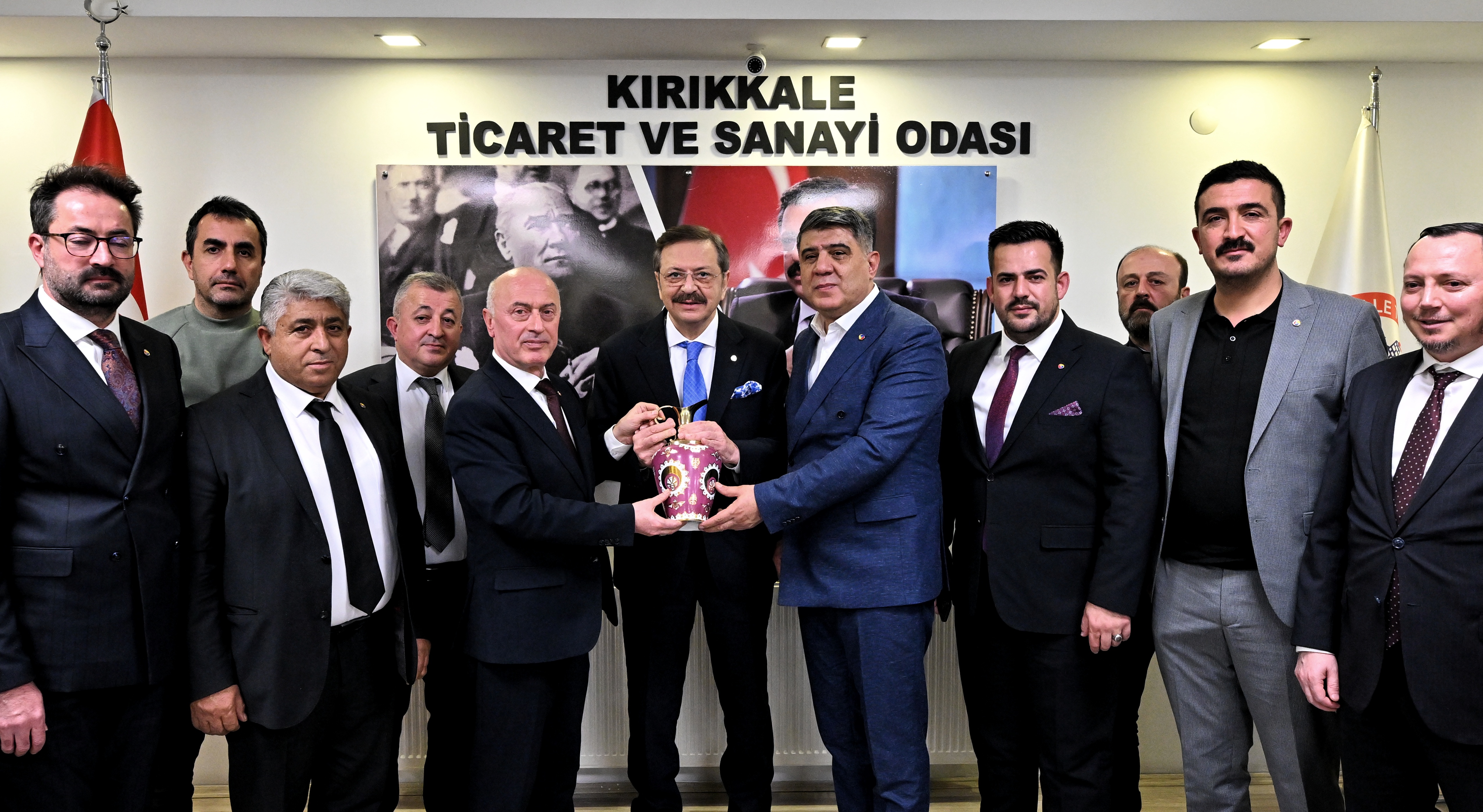 Hisarcıklıoğlu daha sonra odamız hizmet binasında meclis üyelerimiz, Kadın Girişimciler ve Genç Girişimciler Kuruları üyeleri ve personelle bir araya gelerek sohbet etti. Kırıkkalelilerin fahri hemşerisi olduğunu ifade eden Hisarcıklıoğlu, Kırıkkale denince akla ilk gelenin, 1925'te bu topraklarda yükselen fabrika bacaları ve Cumhuriyet'in o ilk sanayi atılımları olduğunu söyledi. “Kırıkkale, Türkiye'nin kendi silahını yapma azminin somutlaşmış halidir” diyen Hisarcıklıoğlu, “Kırıkkale, bugün Anadolu’nun yükselen savunma sanayi ve enerji üssü haline getirmiştir" dedi. Kırıkkale Ticaret Borsası ve Kırıkkale Belediyesi’ni de ziyaret eden birlik başkanımız Rifat Hisarcıklıoğlu daha sonra ilimizden ayrıldı.